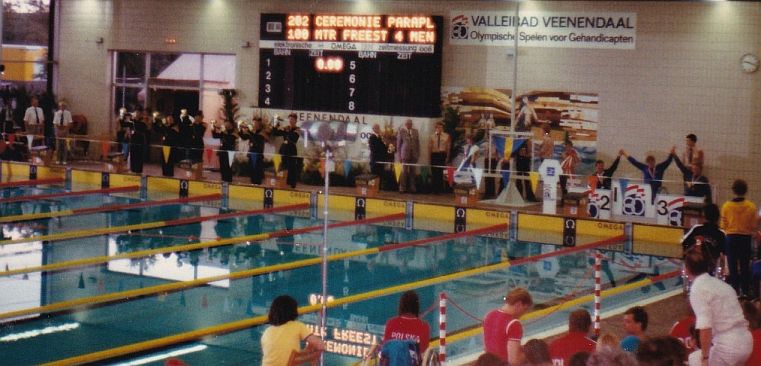 The announcement in 1979 by Dr Guttmann that the CP-ISRA can still participate in Arnhem with a number of athletes and that the “Les Autres” can participate to a limited extent came as a bombshell for the Organization in the Netherlands. Nearly 3,000 medals in 697 disciplines with 2,500 athletes have now been recalculated. A gigantic job to classify all those athletes according to the latest changes. In addition, to get the competition programs for the individual diagnosis groups and disciplines into timetables and accommodations. Then place the athlete in the correct program based on his classification or remove him because he has been disqualified.