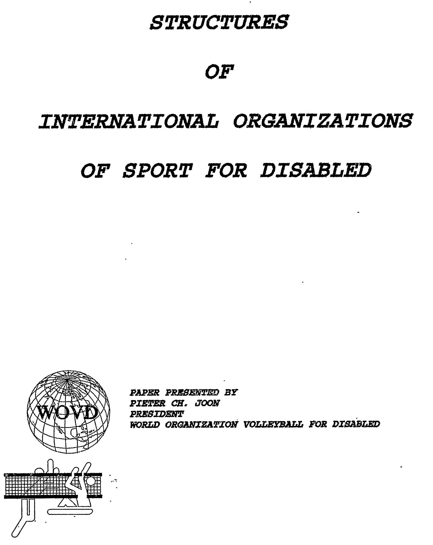 1991 Nottingham Technical Meeting. An informal meeting with the participating countries. No decisions can be made, only the exchange of information. By December 1991 at the latest, the Board of the International Committee will decide which countries can participate in the Barcelona 1992 Games. Another important point is the International position of Volleyball. The Board invites the countries to consider a proposal to make this Committee an independent international organization and no longer to remain a committee of the ISOD. The countries will shortly receive a proposal from the Committee. A decision can be made at the 1992 GA in Barcelona, after which the Decision establishing an International Volleyball Organization for Disabled can be taken by the General Assembly in 1994.,