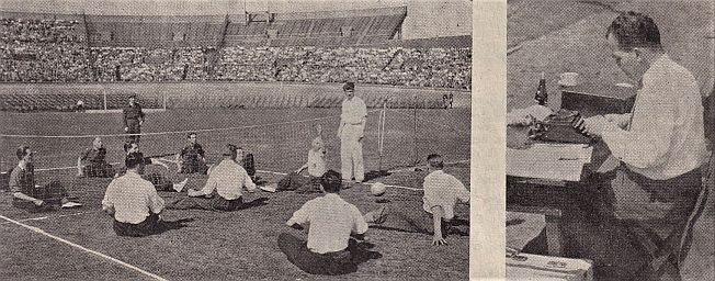 5 mei 1956 Amsterdam. Op een stralende dag werd door de BNMO een prachtige Nationale Sportmanifestatie georganiseerd. Voor het eerst publiekelijk kreeg het nieuwe spel "Zitvolleybal "de volledige aandacht van Publiek en Pers.