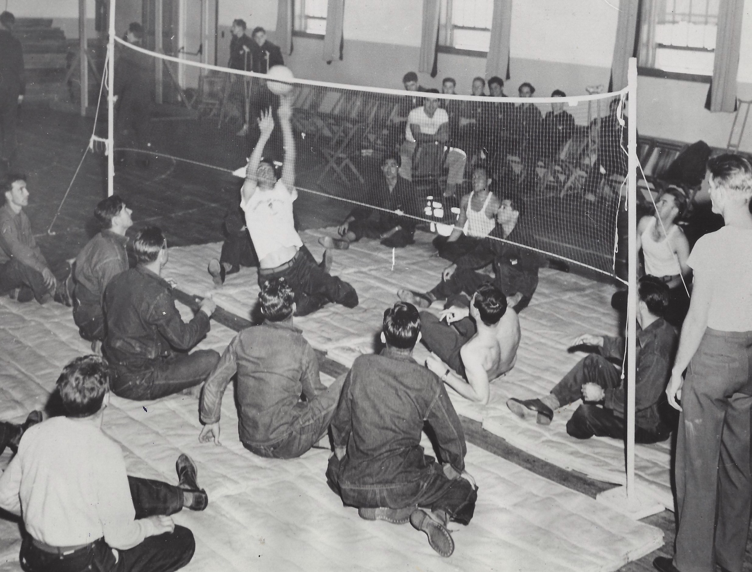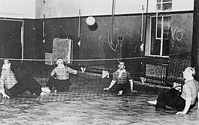 In Nederland werden in die jaren, onder begeleiding van een BNMO sportcomité, aanvankelijk tafeltennis, atletiek nummers en boogschieten aangeboden. Het Duitse Sitz bal werd pas begin 1955 , door de heer Teunsissen, als nieuwe sport voorgesteld, met de volgende regels: