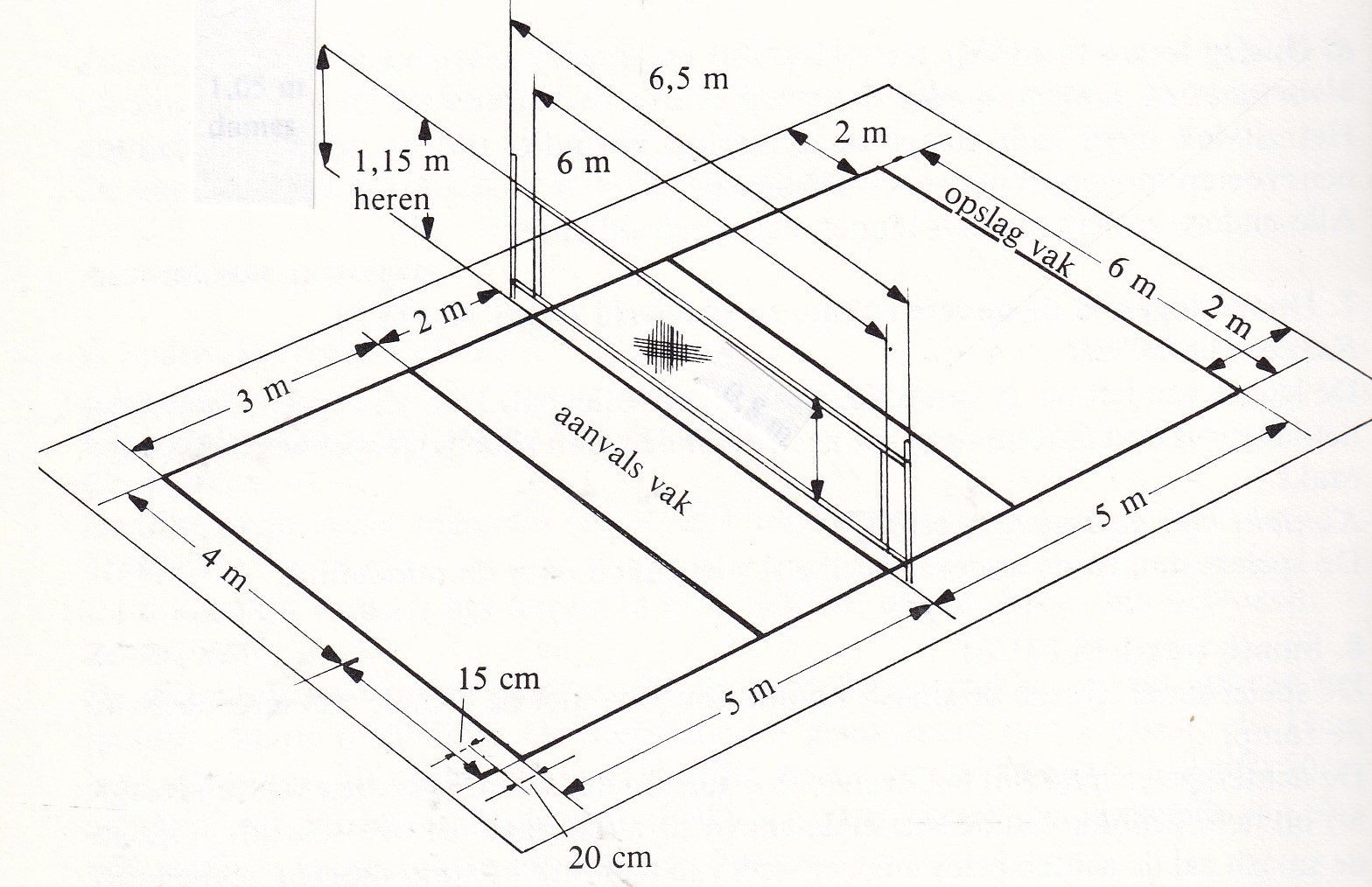 Paal en netconstructie . Een paal- en netconstructie wordt geadviseerd door WOVD. Het geeft het net een betere spanning en voor de 2de scheidsrechter een mogelijkheid beide zijden van het net te beoordelen.