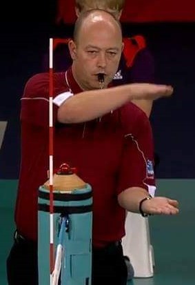 Het unieke Zit Volleybal gebaar van de scheids: Liften